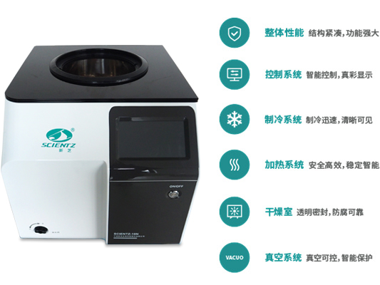 SCIENTZ-10ND/B壓蓋型加熱式鐘罩冷凍干燥機,?凍干面積為0.08平方米,捕水量達3kg/批。該款儀器利用獨特的點狀加熱升溫曲線計算方式,從而實現加熱功能,并且讓升溫更穩定,無過沖,控溫更精準。儀器采用緊湊結構設計,可有效節省寶貴的實驗室空間。使用國外進口壓縮機,功能強大,可提供高度自動化的高品質冷凍干燥環境(常規空載-56℃,可選配-80℃壓縮機),很適合各類企業研究凍干工藝。